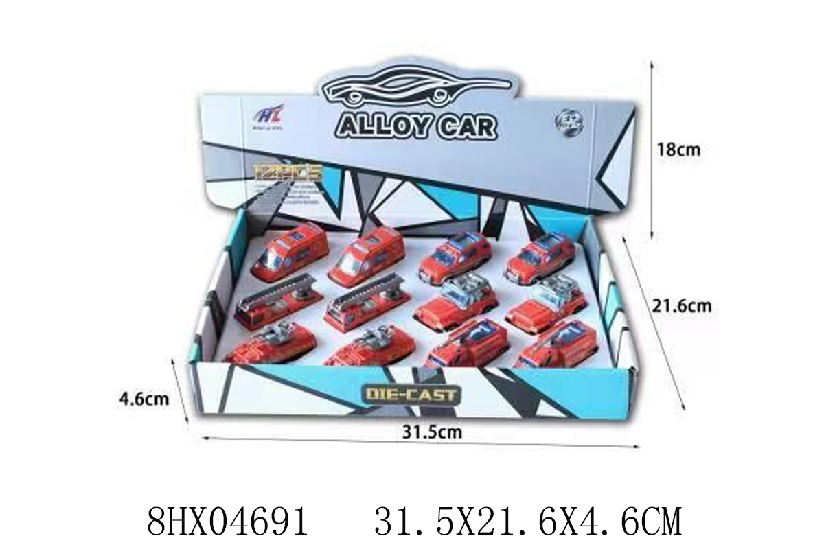 产品名称:1688-1:64滑行合金消防车(12只/盒:24.6元)